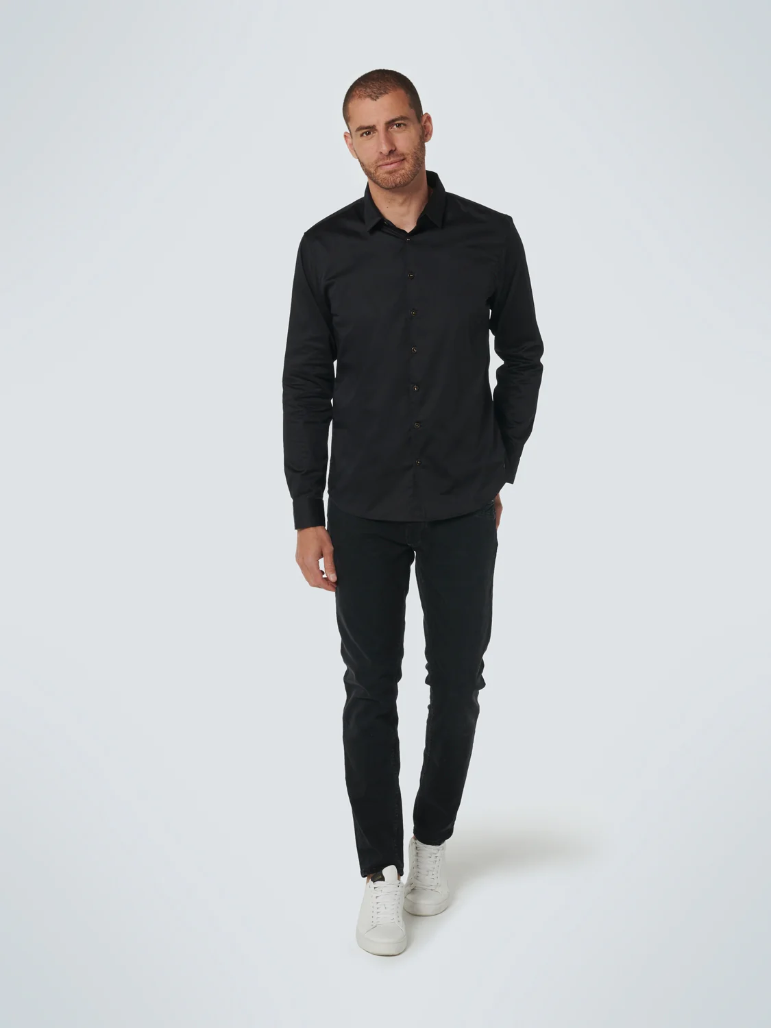 Basic Stretch Shirt Satin Weave | Black