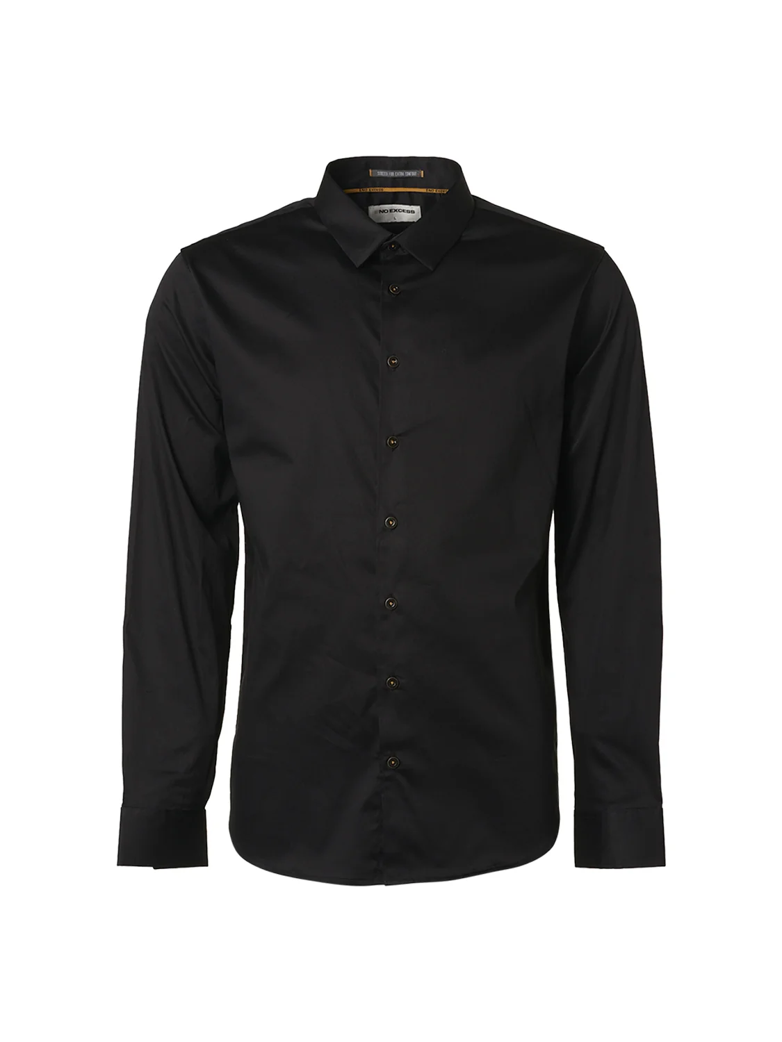 This long-sleeve high-quality basic shirt by No Excess is made of fine cotton satin fabric with stretch and a soft finish to provide comfort at every moment. This shirt has a comfortable fit and dynamic details; a kent collar, a placket with fancy buttons, and a stroke pocket at the left chest. On the inside, you will find a contrasting allover mini stripe pattern and a colorful tape inside the neckline.