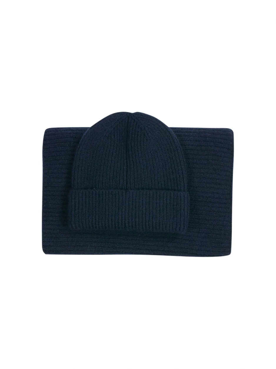 Beenie + Scarf Rib Knit Set | Night