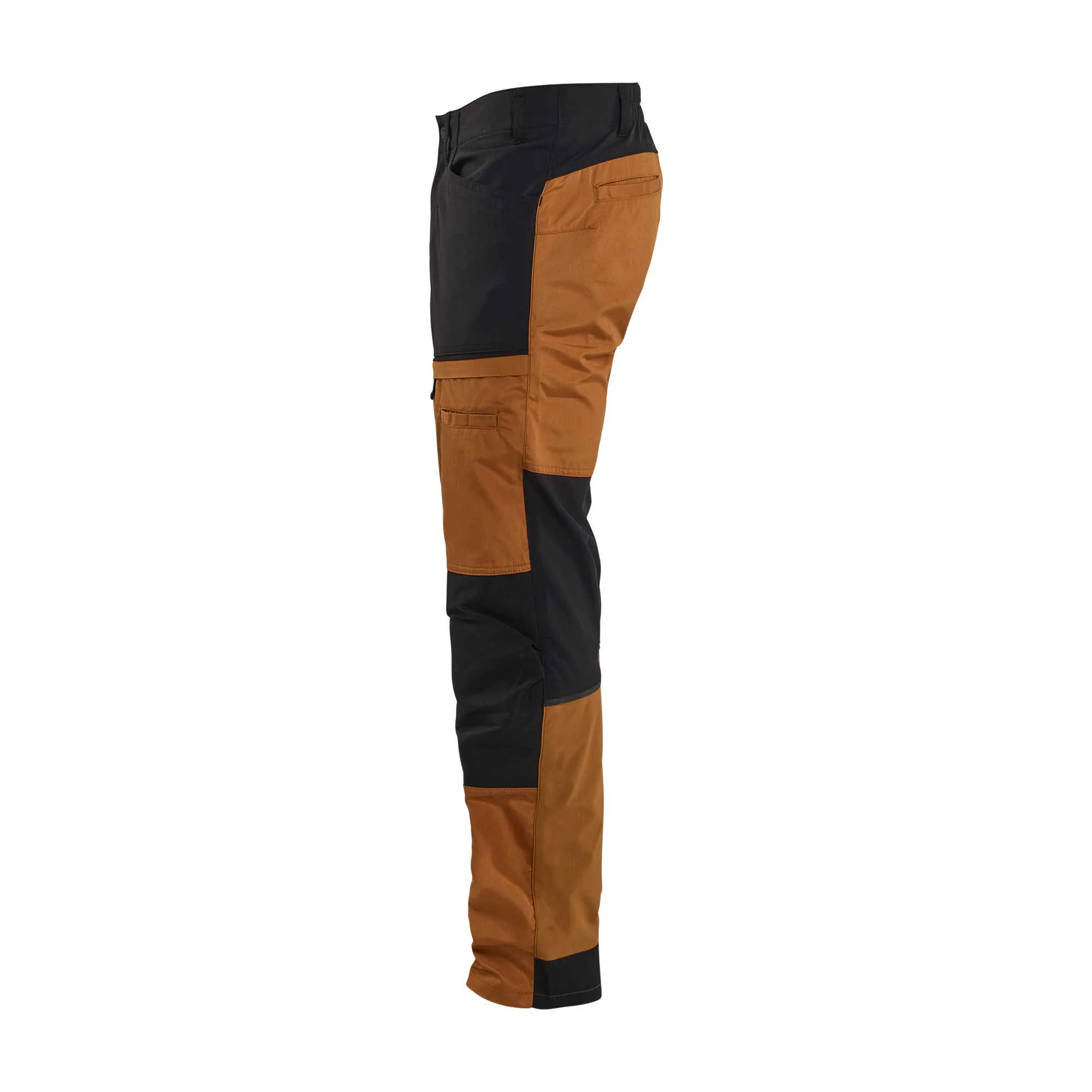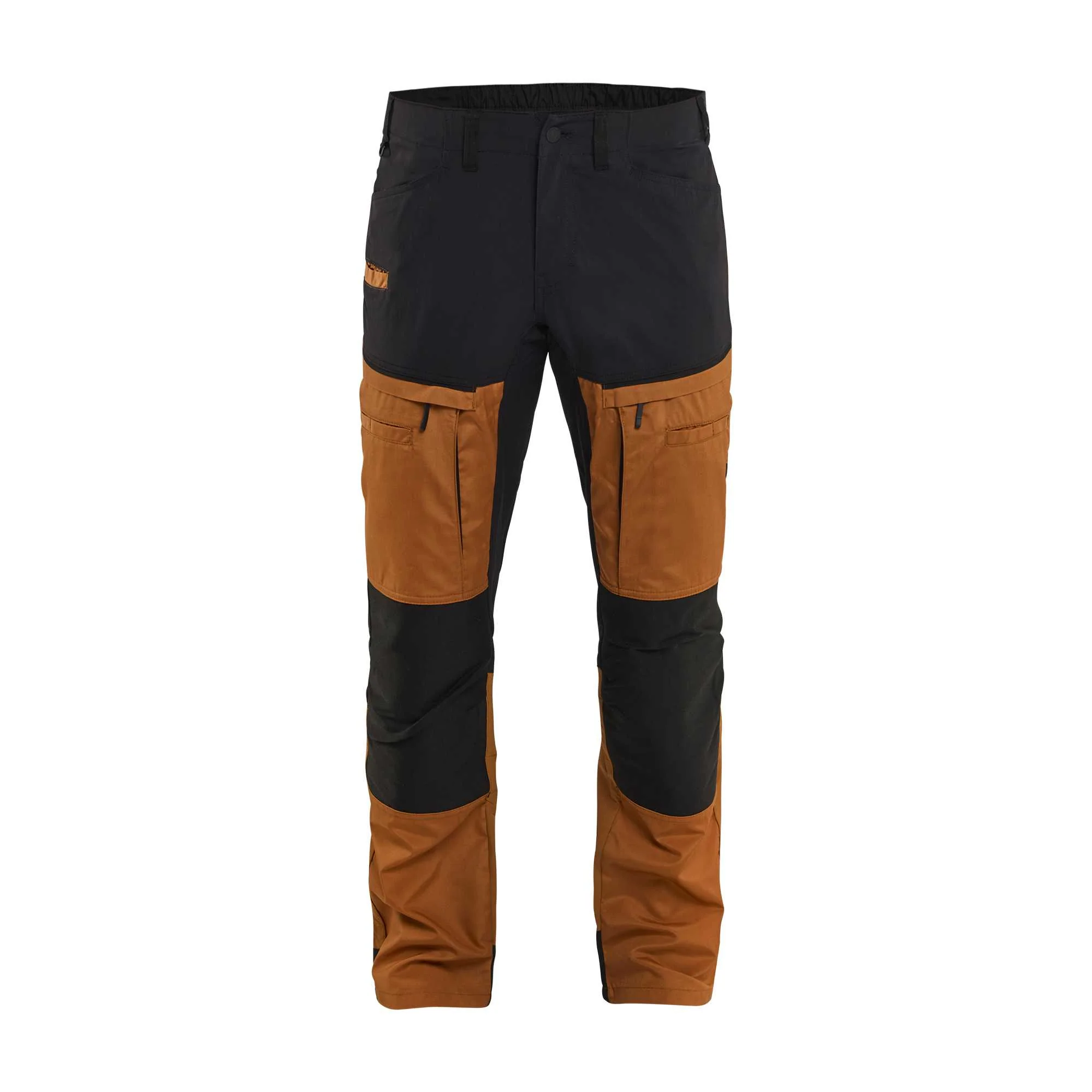Experience superior comfort and flexibility with the BLAKLADER Service Trousers, designed specifically for men who demand durability and ease of movement on the job. These work trousers feature strategically placed stretch panels, ensuring you stay agile throughout your workday. Crafted from a robust blend of 65% polyester and 35% cotton, they offer both resilience and breathability. The stylish rust and black color combination makes these trousers a versatile choice for any work environment.