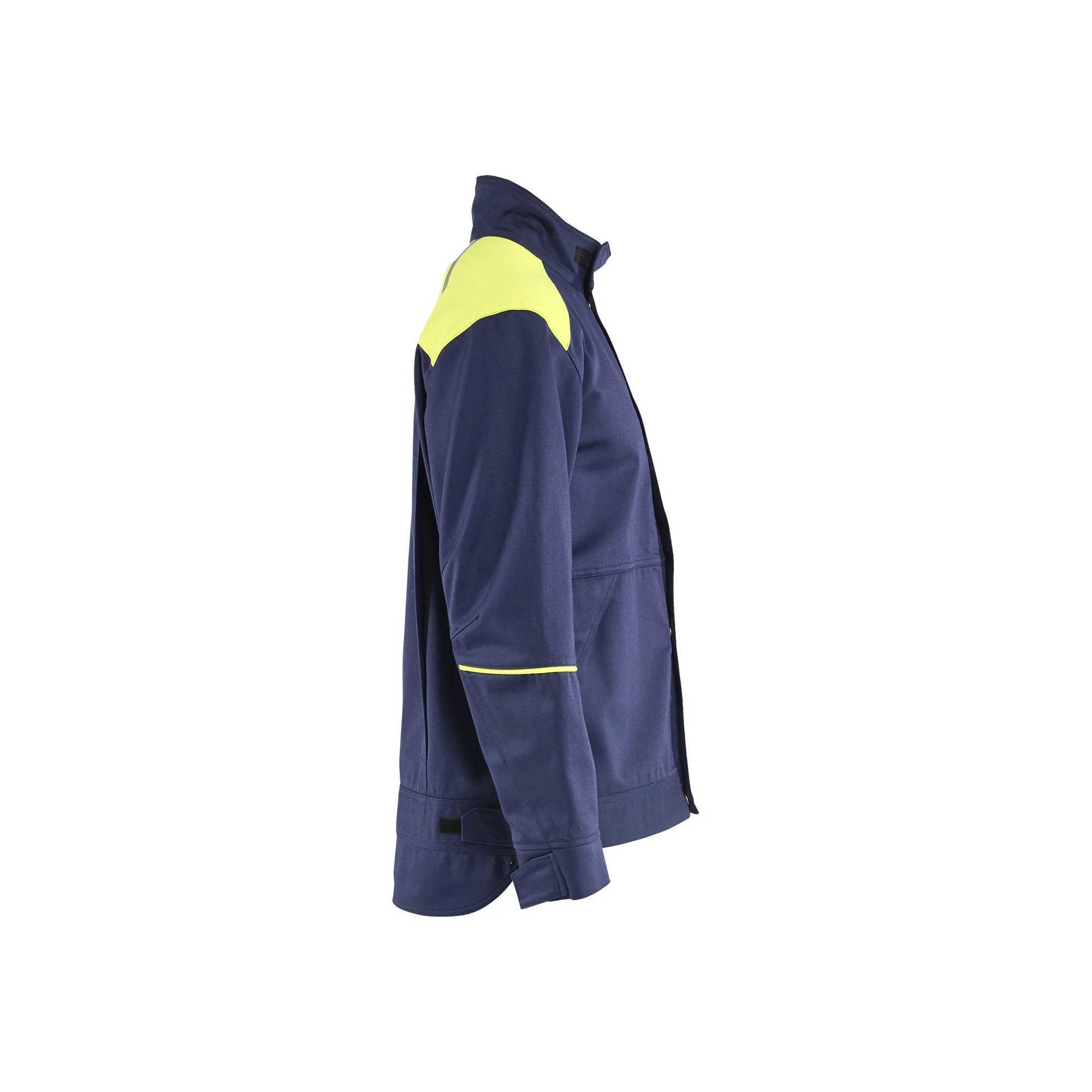 Stay protected and visible on the job with the BLAKLADER 48011501 Welding Jacket. Designed for professional welders, this jacket combines high-visibility navy blue and yellow colors with advanced flame-retardant and antistatic properties. Crafted from a durable blend of cotton and polyester, it offers both comfort and robust protection against heat, flames, and welding hazards. Perfect for all-season use, this jacket ensures safety without compromising on style or mobility.