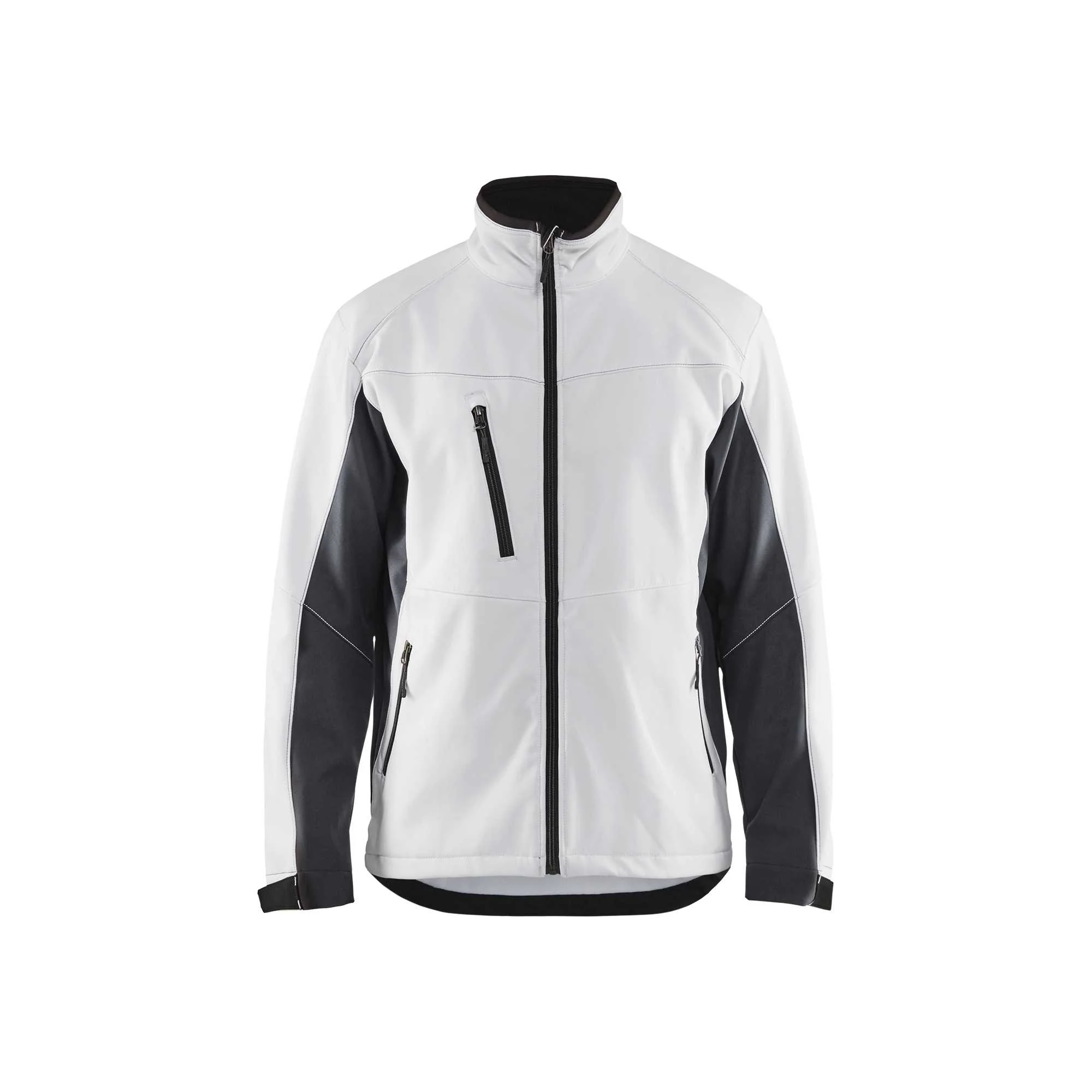 Experience superior comfort and protection with the BLAKLADER Softshell Work Jacket for men. Designed for demanding work environments, this jacket features a durable 2-layer softshell construction that is both water repellent and lightweight. Its modern design in white and dark grey ensures you look professional while staying dry and comfortable throughout the day. Perfect for all-season wear, this jacket is an essential addition to any workwear collection.