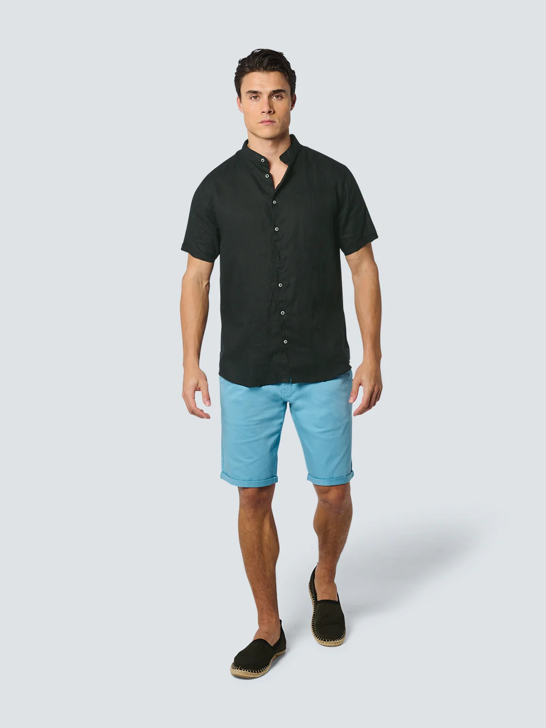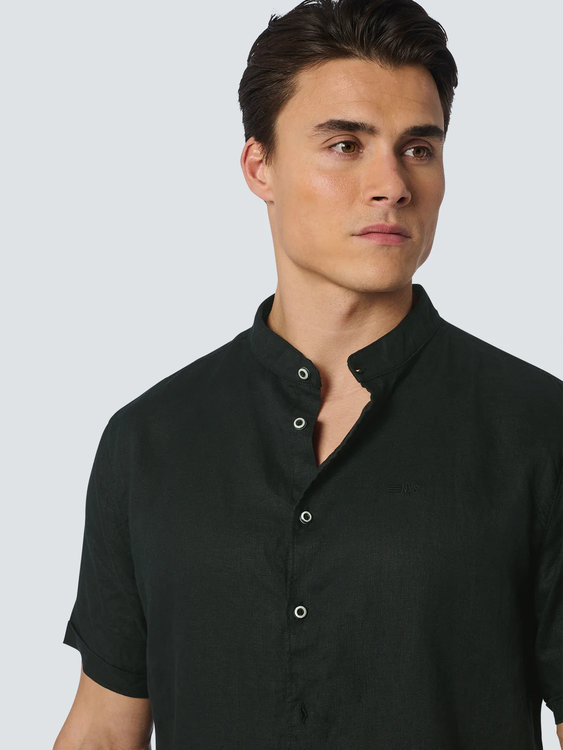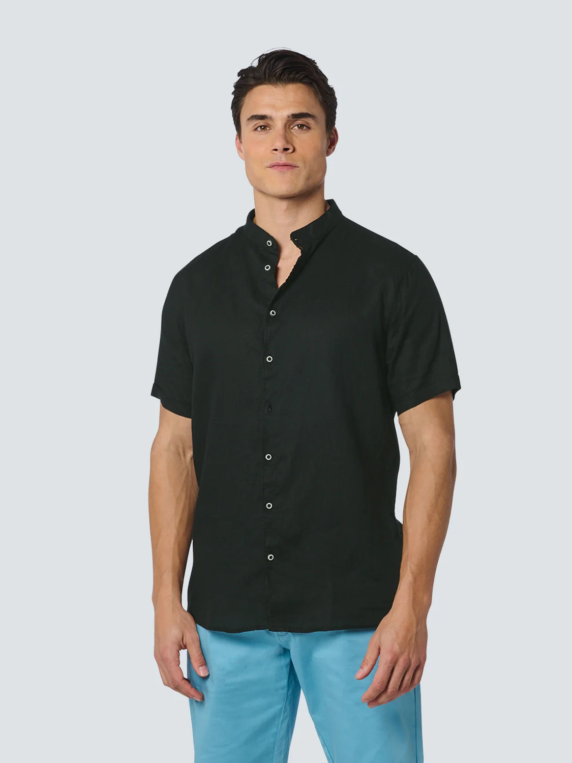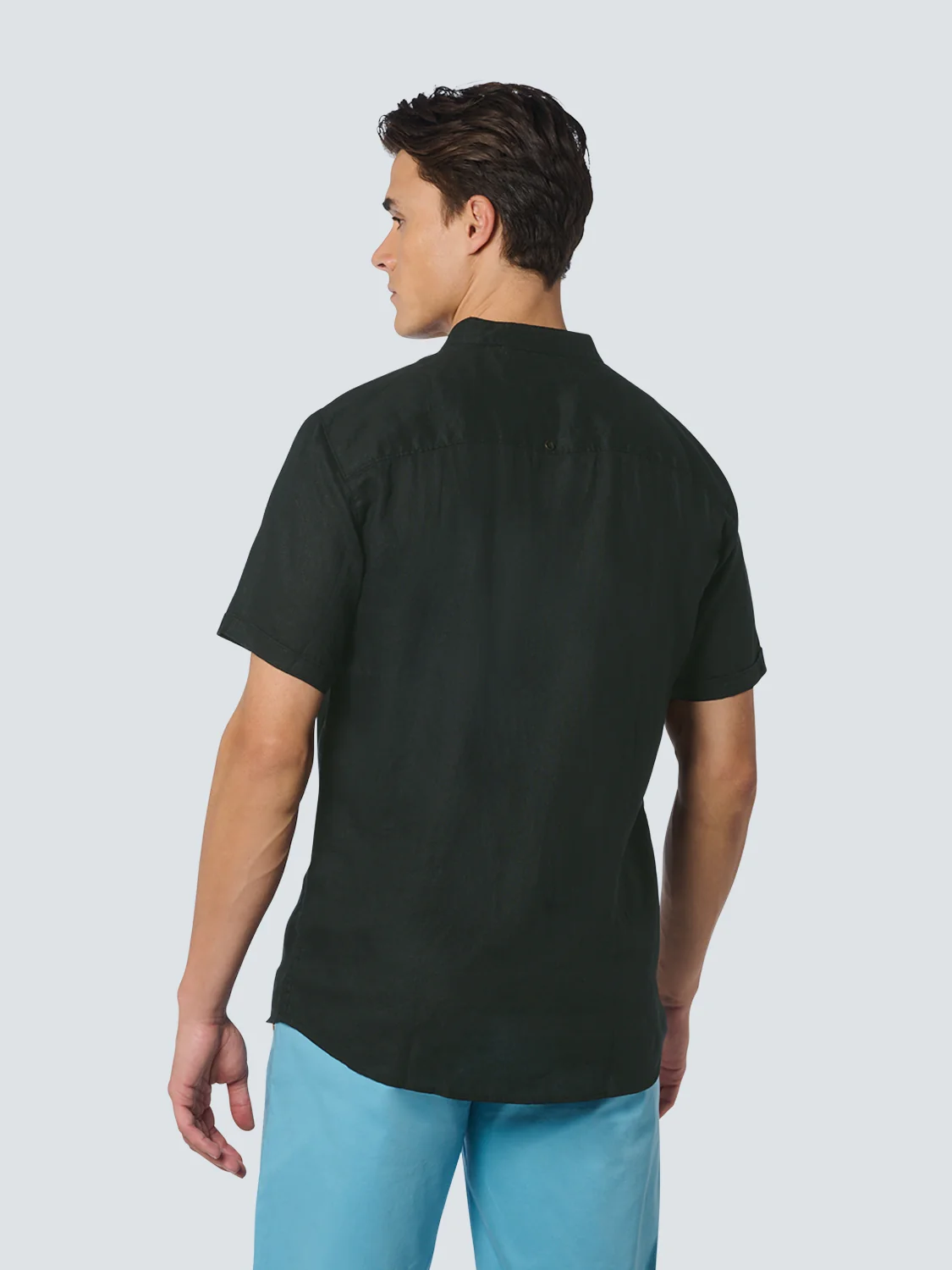 Chemise manche courte Granddad Linen Solid | Black
