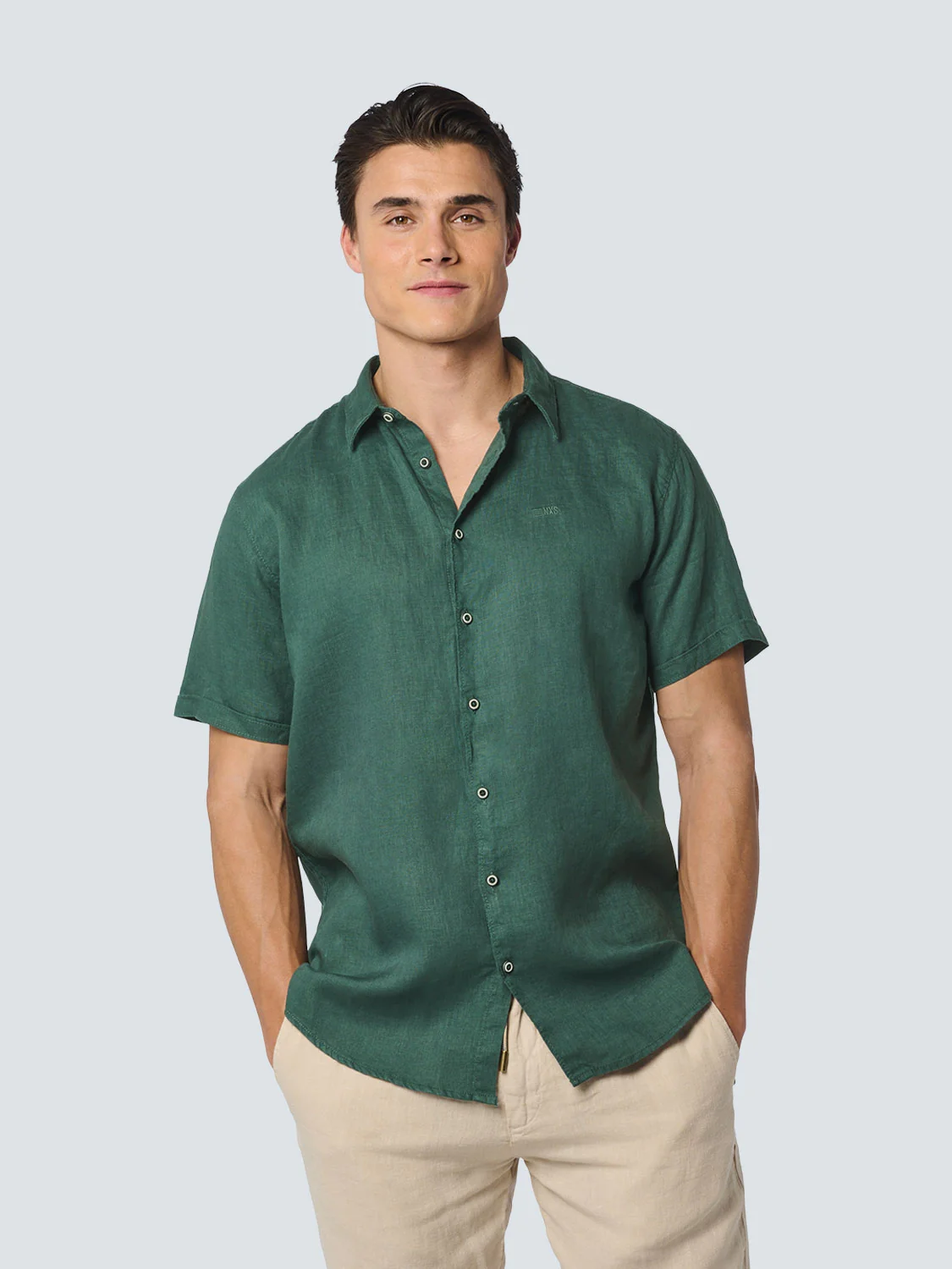 Chemise à manches courtes 2 Colour Melange With Linen | Army