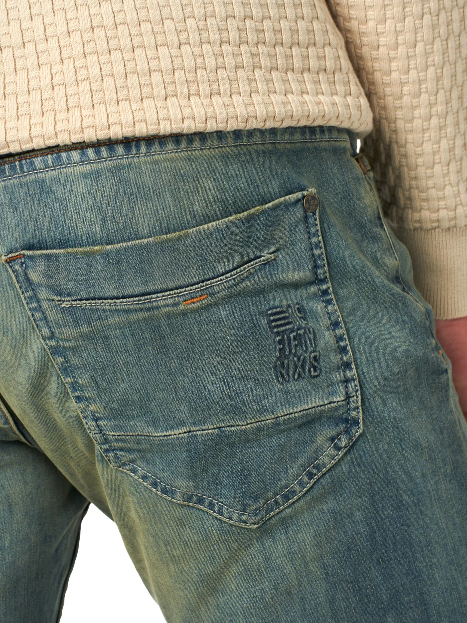 Ce confortable jean slim fit de No Excess, doté d’un style à cinq poches et de coutures surprenantes, est fabriqué en coton extensible avec un délavage pierre léger et décontracté. Les poches arrière sont dotées d’une couture en fil épais. La ceinture est ornée d’un patch en cuir de marque. Le jean est doté d’une braguette zippée.