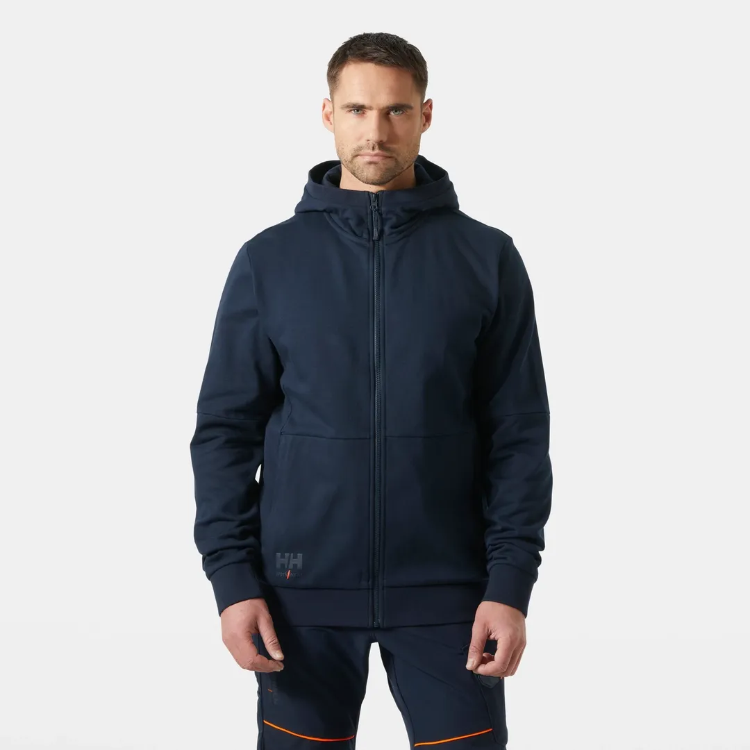 Experience supreme comfort and modern design with the HELLY HANSEN EVO ZIP HOODIE 79345. Crafted for hardworking men, this hoodie features stretch fabric for flexibility, YKK® zippers for durability, and thoughtful details such as rib-knit finishes for extra comfort. Ideal for all-season wear, its blend of cotton, polyester, and elastane offers breathability, strength, and a great fit for both work and casual settings.