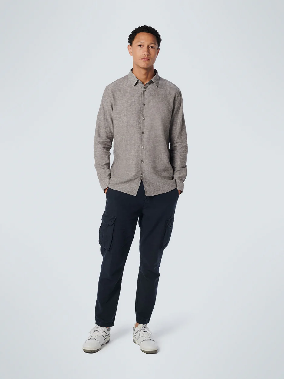 Ce cargopant est fabriqué dans un tissu de qualité, mélange de toile et de lin, qui est doux et agréable à porter. Il comporte deux grandes cargopoches sur le haut de la jambe, ainsi que deux poches latérales à l’arrière. Le pantalon est teinté dans la masse, ce qui lui confère un aspect et un toucher uniques. Une petite poche à stylo se trouve sur le devant, et un petit badge métallique du logo NXS se trouve sur la poche arrière. Le pantalon a une coupe ample et fuselée pour un look décontracté.