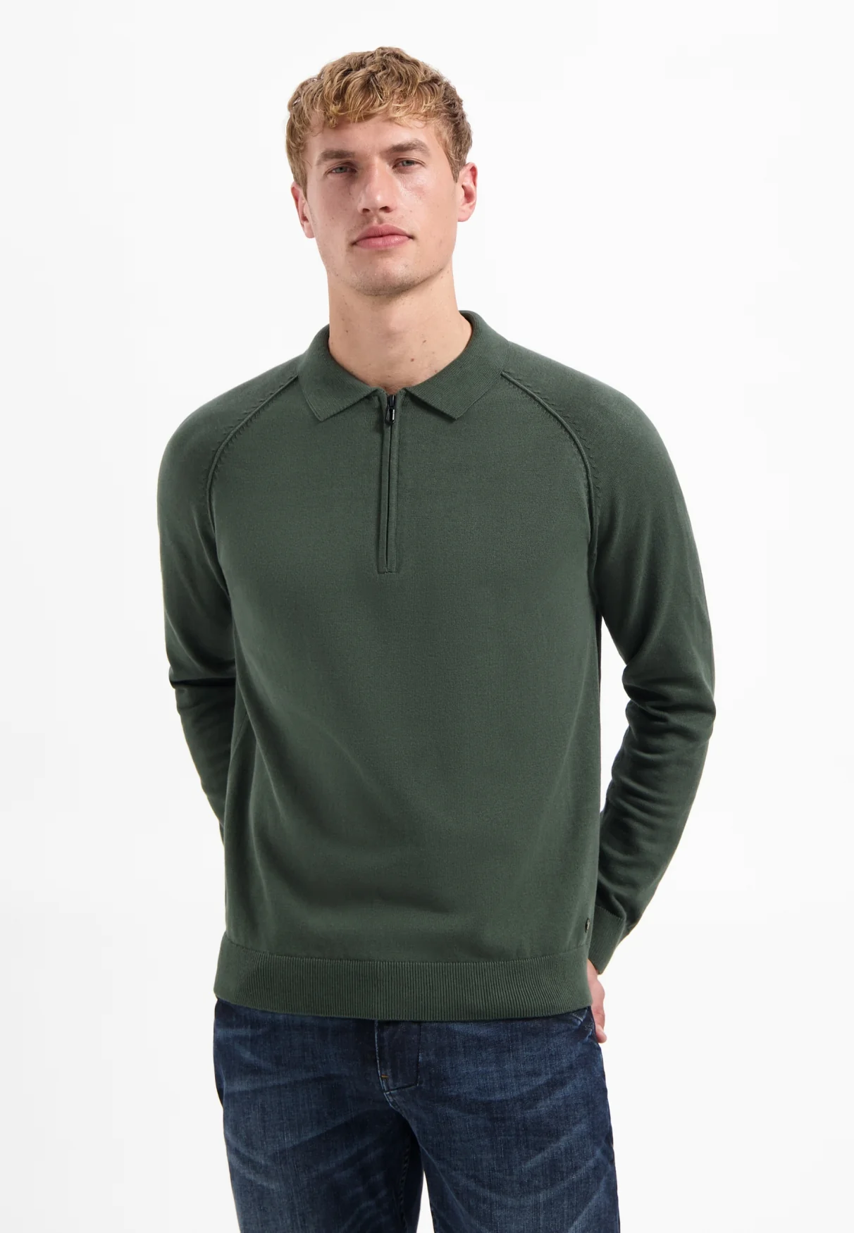 Ce pull raffiné combine un col polo classique, un demi-zip sportif et des manches raglan confortables. Réalisé dans un doux mélange de coton. À porter avec un chino pour une allure casual soignée.
