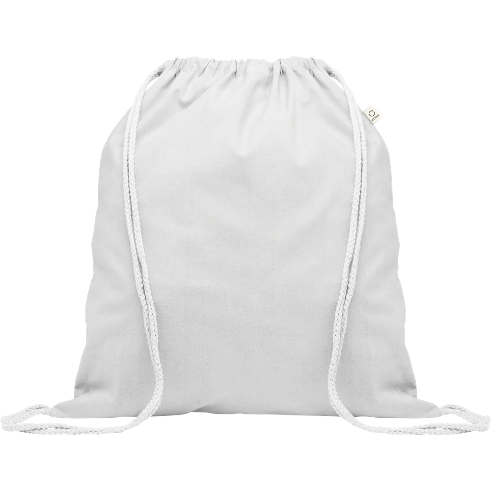 This recycled cotton and RPET drawstring bag offers durability and eco-consciousness in one lightweight design.