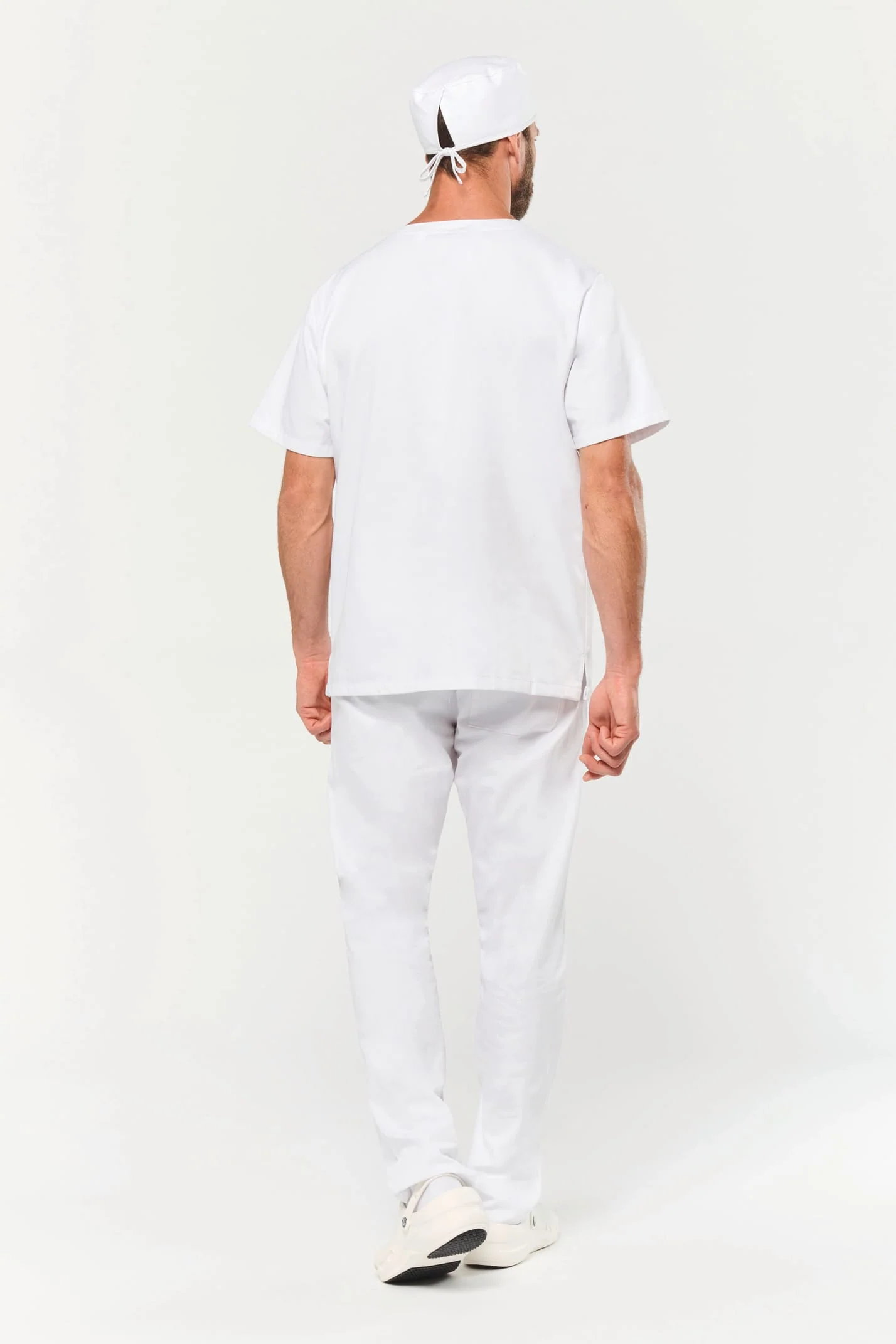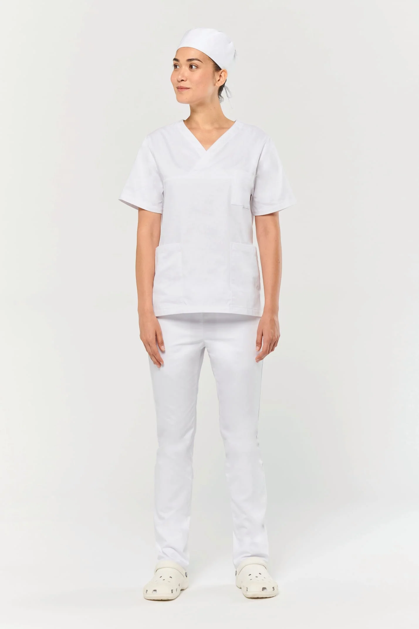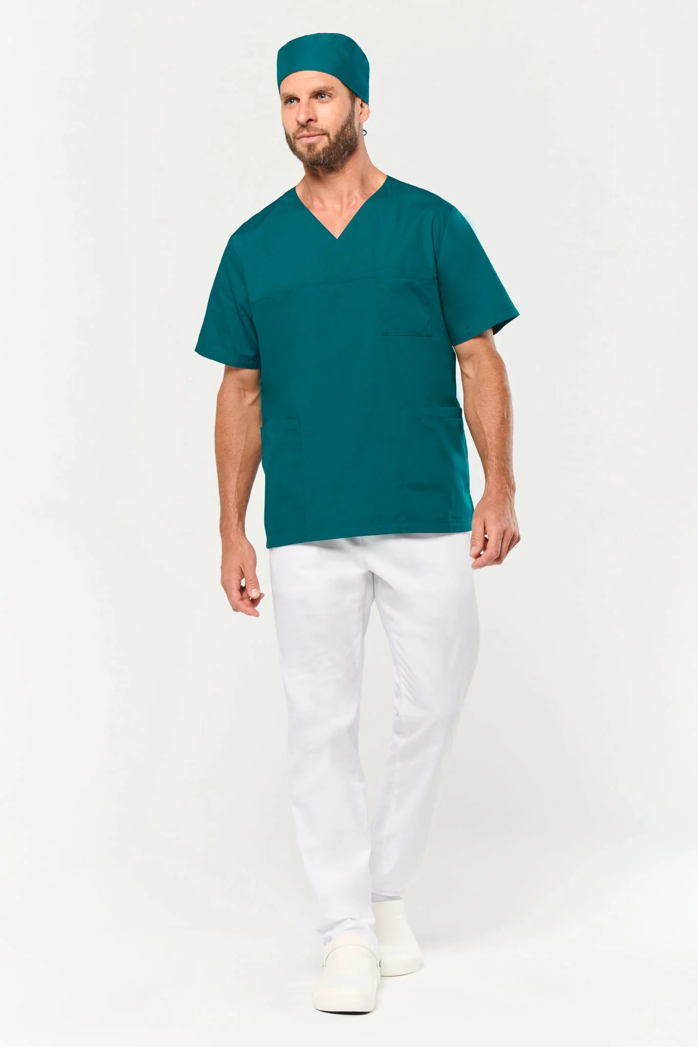 65% polyester / 35% coton. Tissu sergé. Norme ISO 15797 lavage industriel 75°C (20 lavages). Coupe confort. Encolure en V croisée. Poche plaquée poitrine côté cœur. 2 grandes poches plaquées avant. 2 fentes d’aisance latérales. Etiquette nom à l’intérieur du vêtement. Etiquette de marque Tear Away.